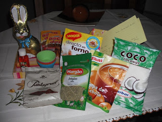 Aqui estão os meus miminhos... vieram alegrar o meu dia pois por estes lados hoje está muito cinzento e chuvoso. Ena tantos, não é? :) Vinham numa caixinha linda os seguintes produtos: 1 coelho de chocolate (ai que rico, quem não gosta de um chocolatinho?), 1 embalagem de sopa de cebola, 1 embalagem de tempero directo ao forno para frango, 1 embalagem de coco ralado,1 embalagem de óregãos, 1 embalagem de chocolate em pó, 2 embalagens de pudim de chocolate, 6 formas redondas de silicone (ainda não tinha redondas de silicone! Tenho de outros formatos e andava a pensar comprar redondas... veio mesmo a calhar). E ainda.... um mini gel de duche de morango, amei este pormenor, por acaso à minha amiga secreta também enviei do género: um mini perfume :) Gostei tanto, mas tanto de tudo que vim a correr fazer o post ehehe... apenas me resta desejar a todos uma PÁSCOA FELIZ!